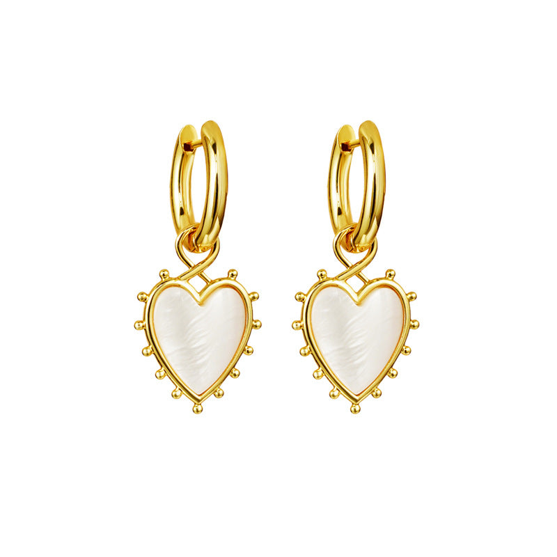 Pair of Heart-shaped Huggie Hoop Earrings-White