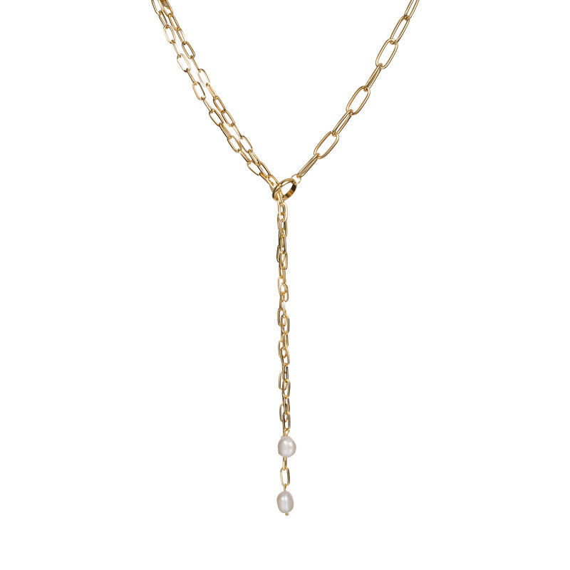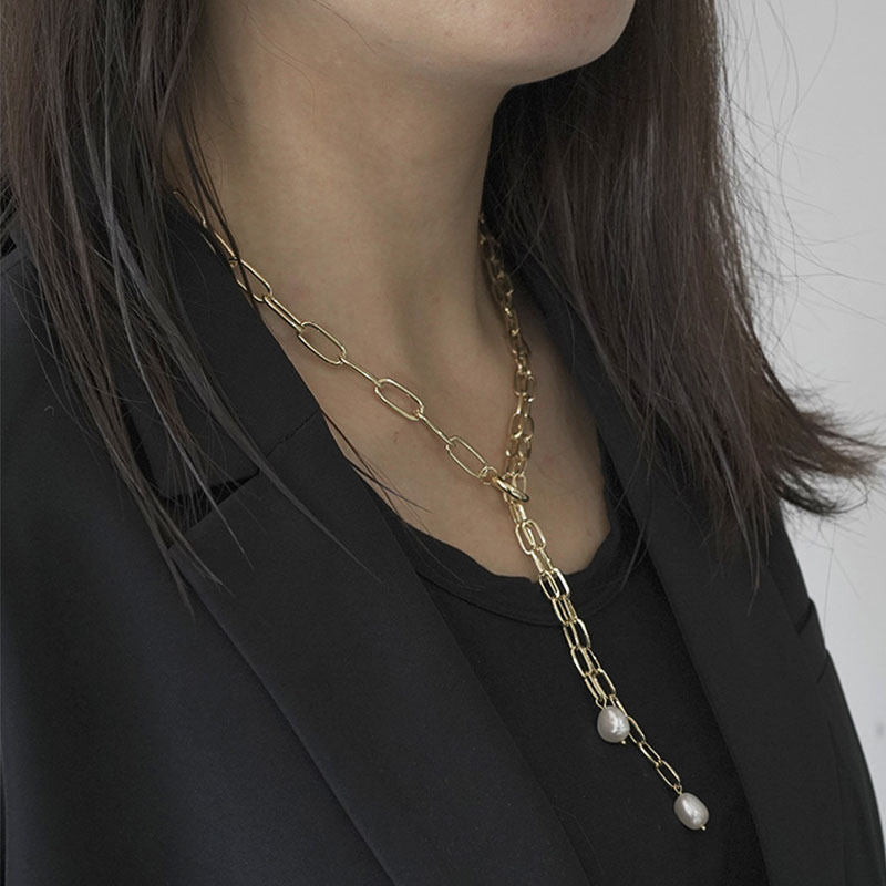 Paper Clip Necklace Pearl Pendant Collarbone Chain