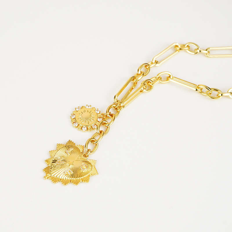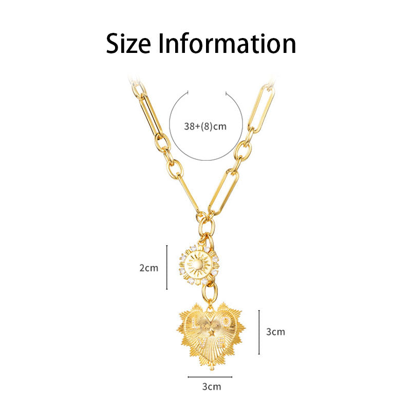 Paperclip Chain Engraved Heart Pendant Necklace for Women