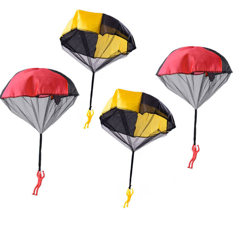 Parachute Toy 4 Pieces Set Free Throwing Outdoor Childrens Flying Toys-RedYellow