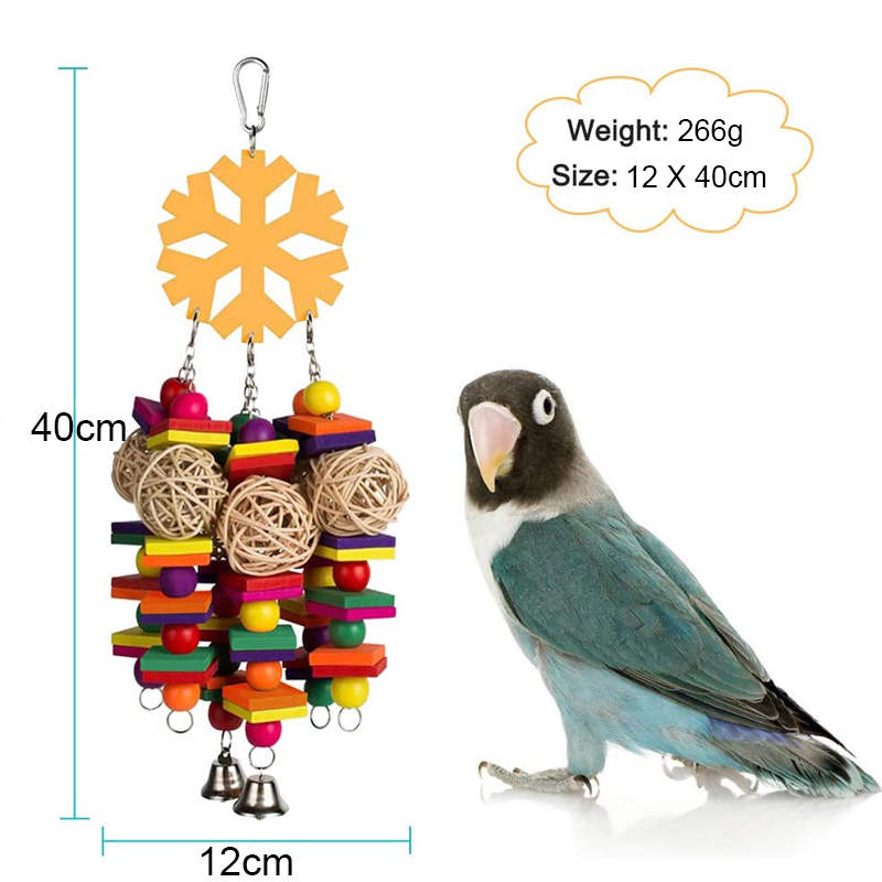 - Scientific color combinations can quickly attract parrots, and colorful wooden block bite toys will keep your parrot from boredom and anxiety. You just need to gently shake the bell to guide your parrot into a fun game and she will feel happy and relaxed. This precious bird toy provides all-day entertainment!