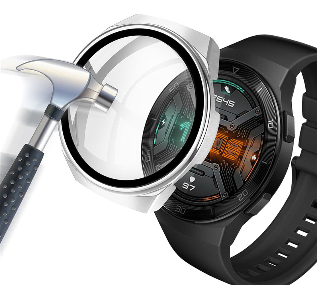 PC + Glass Full Cover WatchCase For Huawei Watch GT2E-Silver