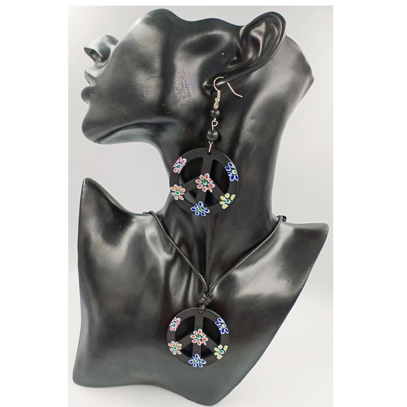 Peace Sign Dangle Earrings + Hippie Necklace Set C