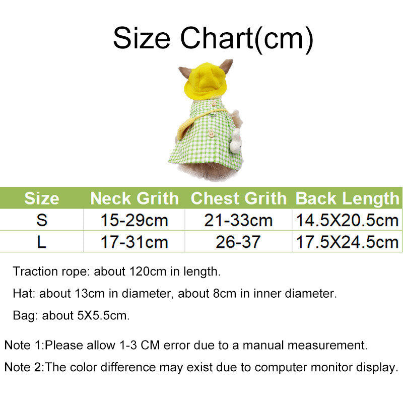 - A set (1X Pet Vest + 1X Leash + 1X Hat + 1X Bag + 1X Rabbit Pin)