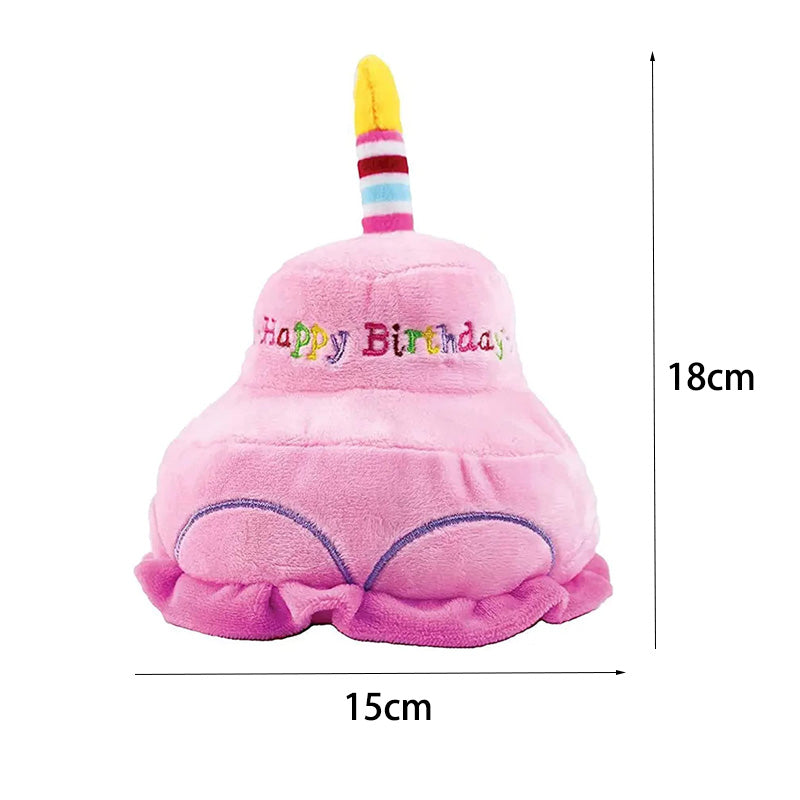 Pet Plush Doll Birthday Double Layer Cake Squeaky Dog Toy-Pink