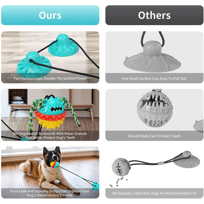 - Reduce the dog's destructive behavior: the suction Cup dog toy for your dog a dog together in the yard, at home or the Park to play, keep your Pets away from furniture, to protect the family's shoes, socks, bed sheets, sofa from bites.