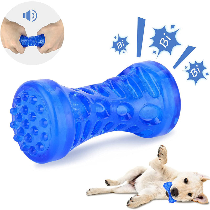 Pet Squeaky Chew Toys for Dogs Teething Cleaning-Short Dumbbell