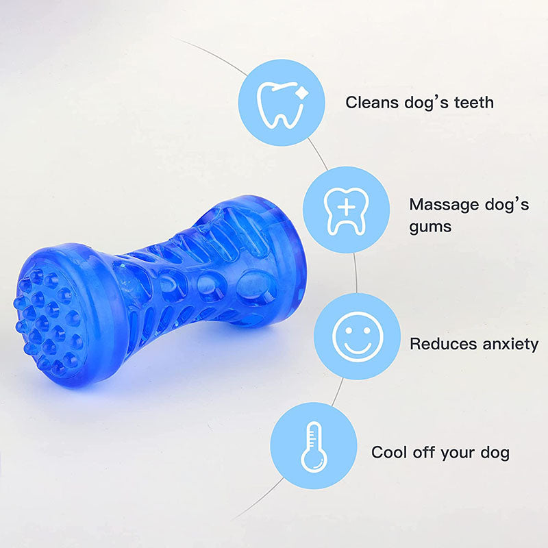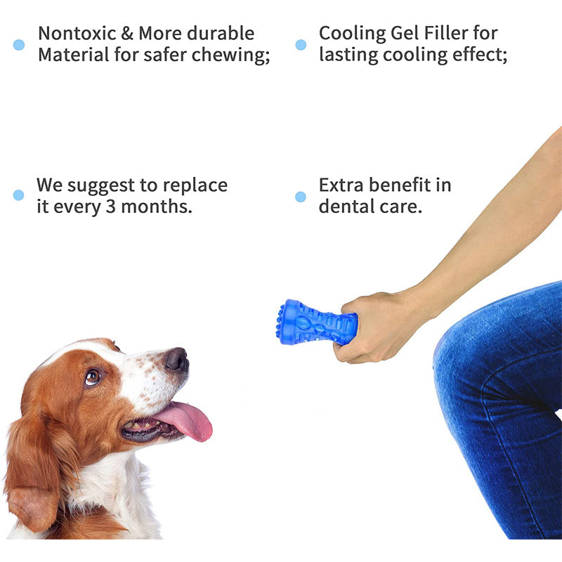 - Freeze a few hours later,frozen dog teething toy with suitable low temperature,keep your dog on a hot summer to keep cool. Can freeze is designed to let your dog while playing to enjoy the cool. Relieve dog lazy performance and improve the appetite.