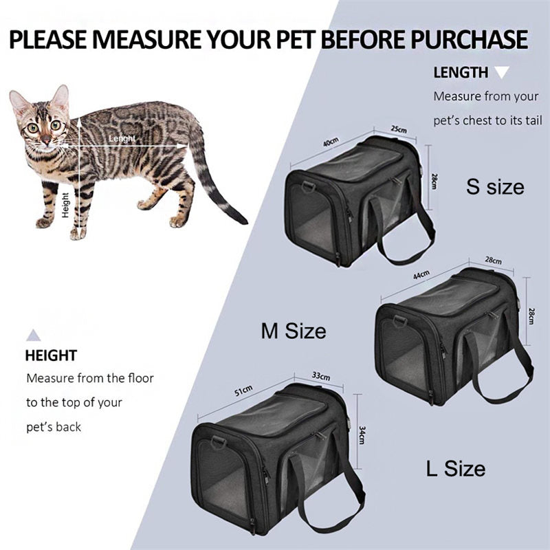 Pet Travel Bag for Small Medium Cats Dogs Puppies Soft Sided Collapsible Puppy Carrier-Black