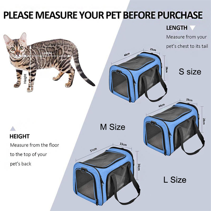 Pet Travel Bag for Small Medium Cats Dogs Puppies Soft Sided Collapsible Puppy Carrier-Blue