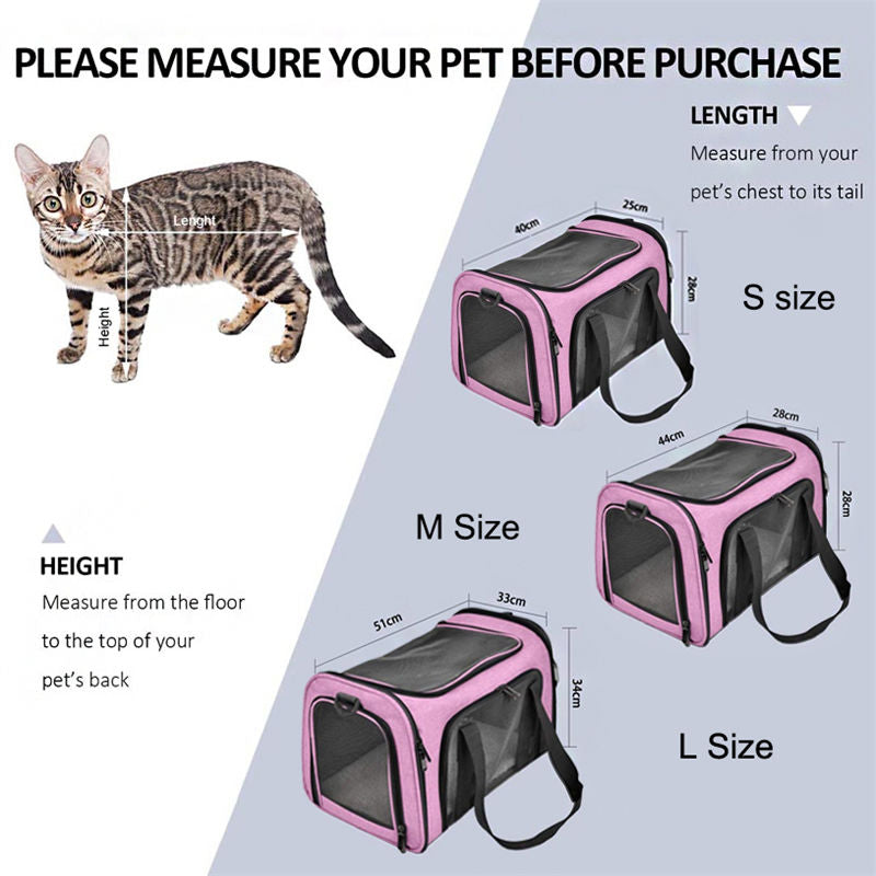 Pet Travel Bag for Small Medium Cats Dogs Puppies Soft Sided Collapsible Puppy Carrier-Pink