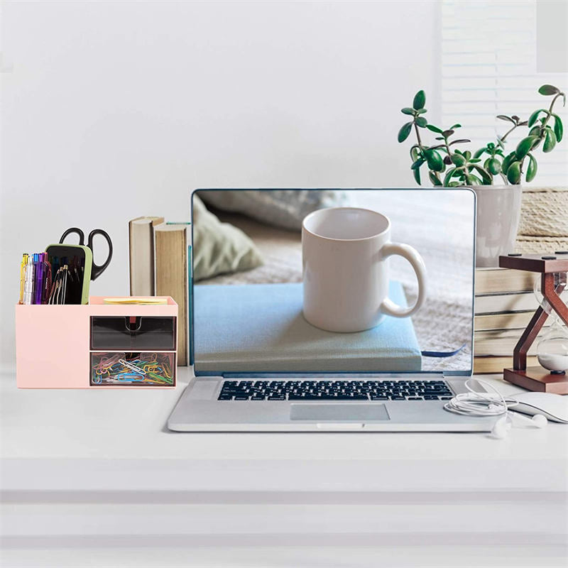 Plastic Cosmetic Storage Box Office Desk Multi-Functional Organizer -Pink