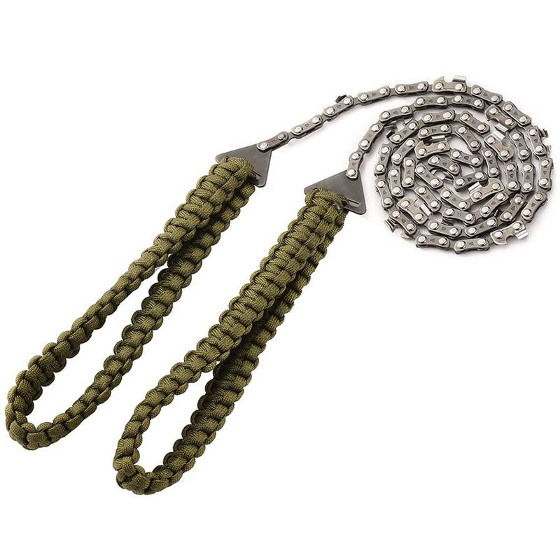 - Portable Chain Saw With Multipurpose Paracord Nandle.The camp saw extremely light weight, versatile and flexible. More exciting is its cool paracod handle, it can be untied and extended to maximum .Comes with a convenient and compact belt loop pouch to store hand chain saw. It¡¯s great to put into your pockets, bags or hang on the belts.