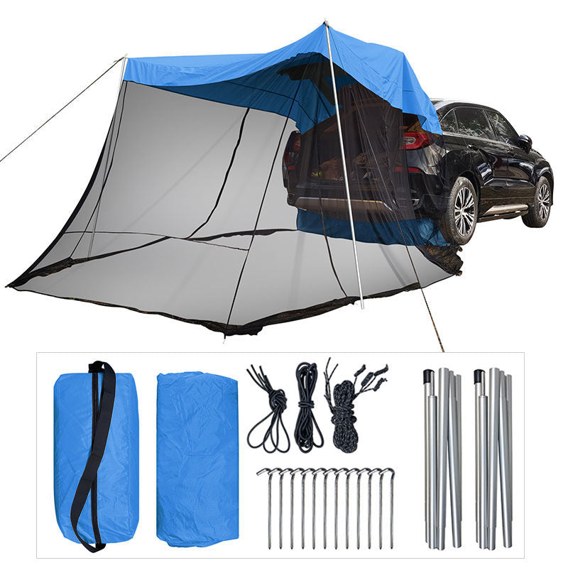 Portable Car Awning Sun Shelter with Mosquito Net for Camping-Blue