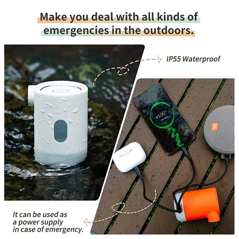 - Ultra-Light & Portable: Handheld camping air pump weighs only 160g, 51.5X57.5X77mm;which is small enough for backpacking and carrying.The sleeping pad pump can be widely used for outdoor camping,hiking,sleeping pads,air boats,kayaks,air mattress,beach toys,inflatable furniture,swimming rings.What's more, IP55 to cope with various situations in the field.