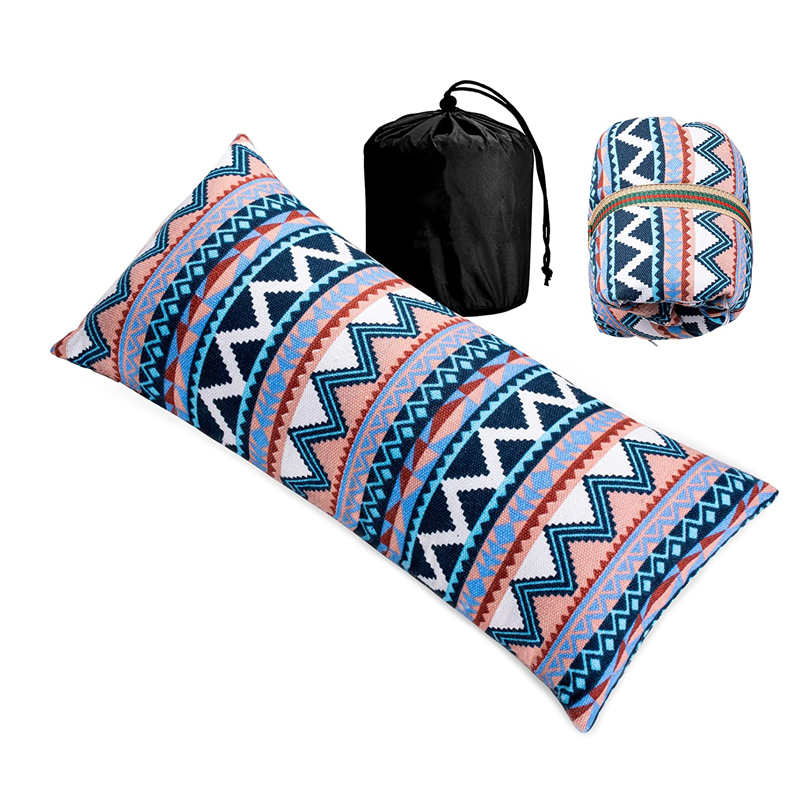 Portable Ethnic Style Camping Pillow with Storage Bag-Navy Blue