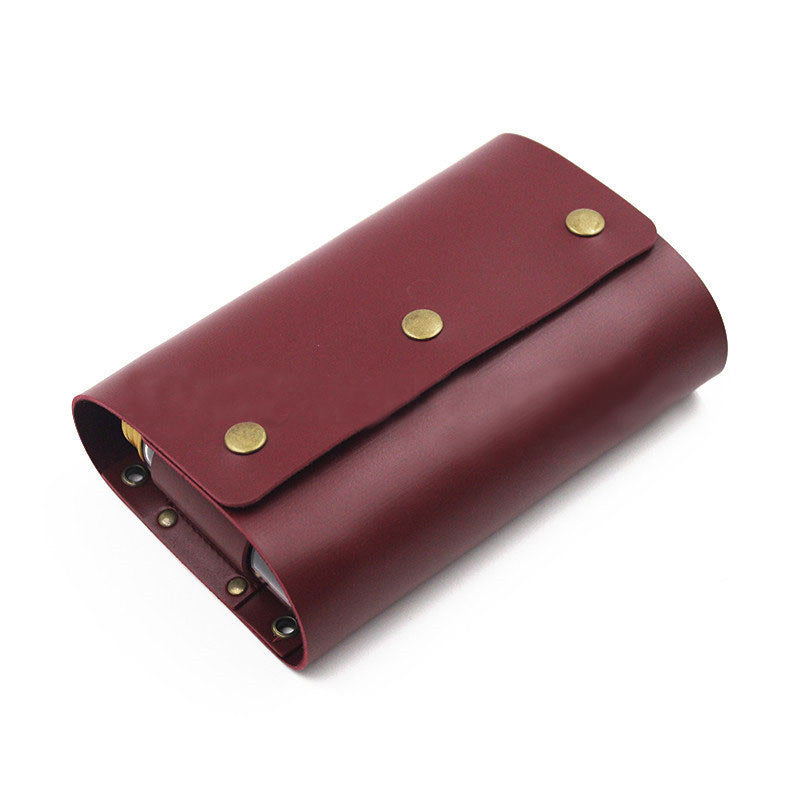 Portable Spice Bag Leather Seasoning Storage Bag With Bottle-Claret