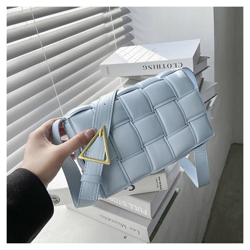 PU Woven Crossbody Handbag for Women Small Shoulder Square Bag-Blue
