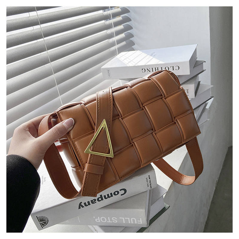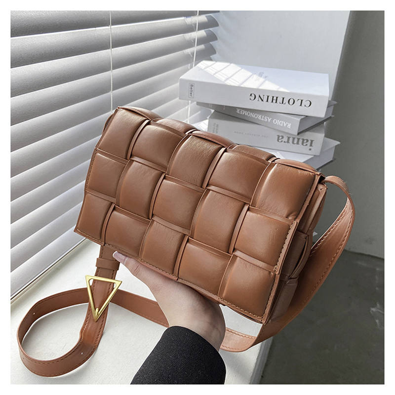 PU Woven Crossbody Handbag for Women Small Shoulder Square Bag-Brown
