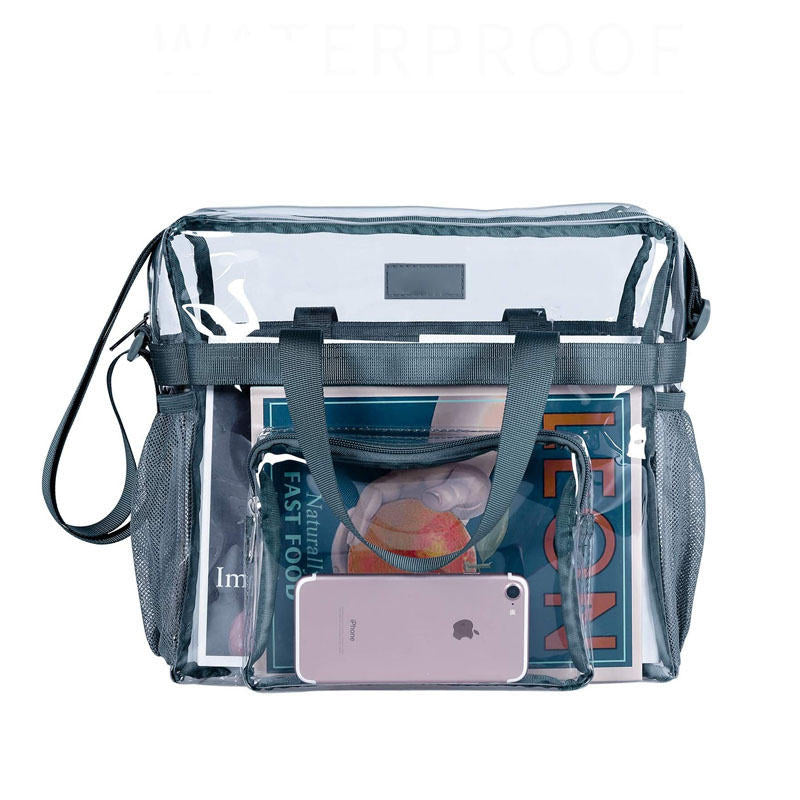 PVC Large Capacity Transparent Travel Tote Bag for Work Stadium Approved-Gray