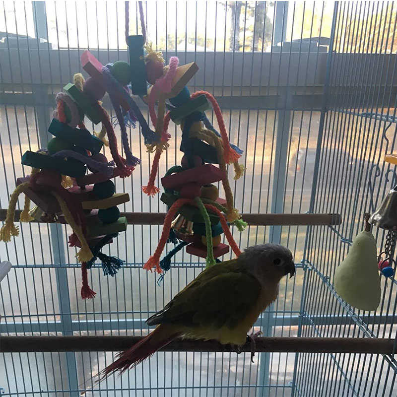 Material: Bird toys are made of food grade color and natural wood, pure handmade, very safe for pets and will not harm them. more resistant to bite and durable.