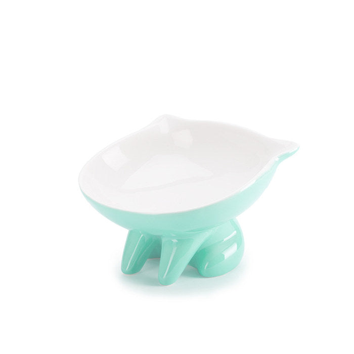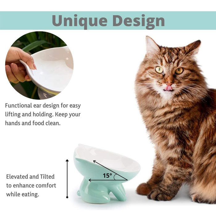 Raised Ceramic Cat Food Q Bowl Dish Tilt Angle Protect Cats Spine-Green