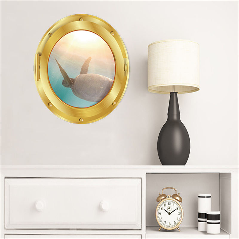Removable 3D Under The Sea Nature Scenery Decor Submarine Gold Window Sea Turtles Wall Sticker