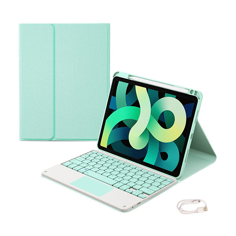 Removable Keyboard Case For iPad Air 4/iPad Air 5/iPad Pro 11 7 Color Backlit with Touch Panel Pen Slot-MintGreen