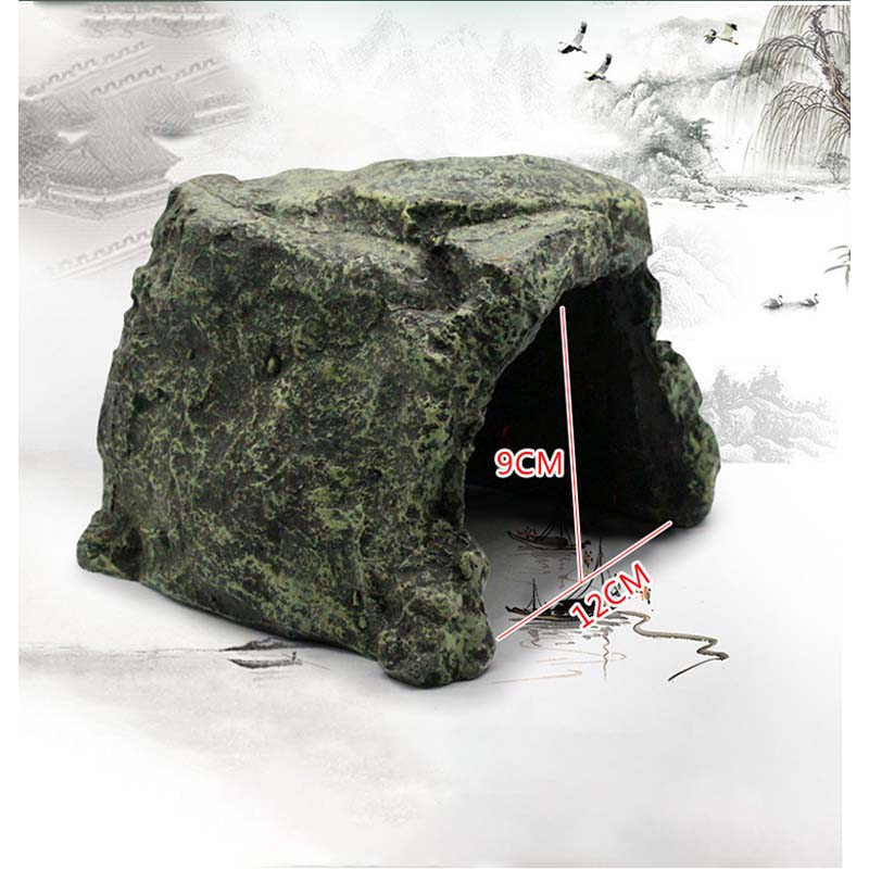 Reptile Rock Hideout Cave for Bearded Dragon Turtle Small Lizard-Green