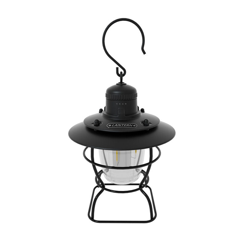 Retro Hanging Camping Lantern Rechargeable Portable Warm Lights-Black