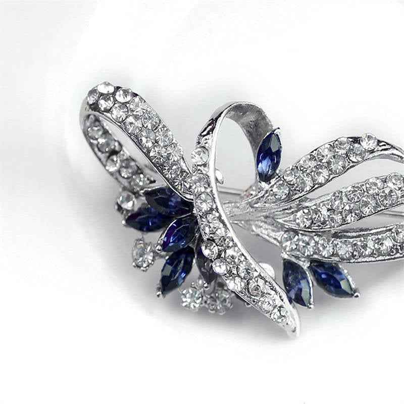 Rhinestone Crystal Brooch Flower Pin for Women-DarkBlue
