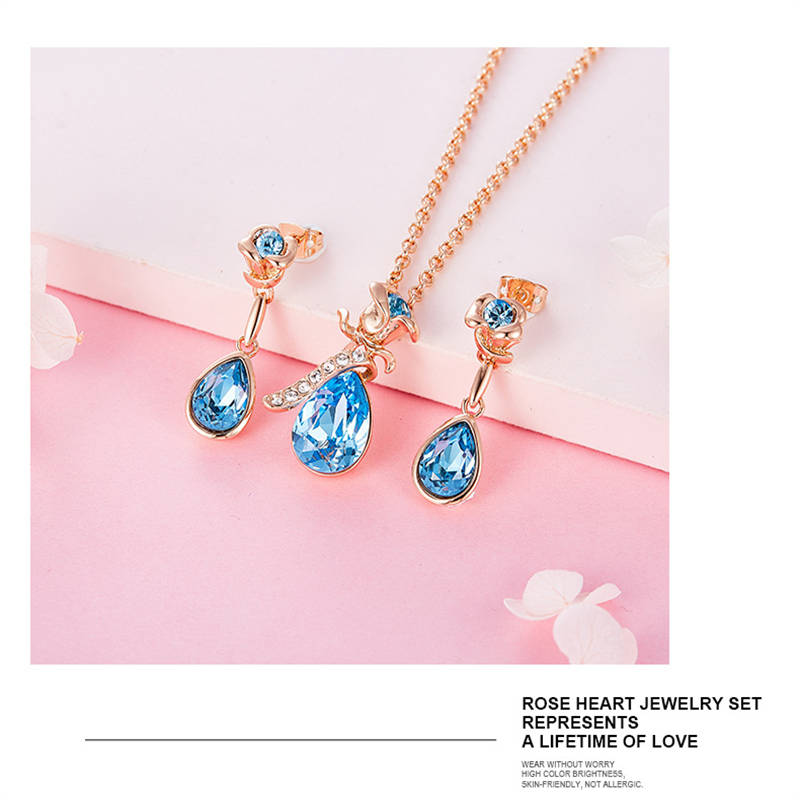 Rose Crystal Necklace and Earrings Set for Mom Wife-GoldBlue