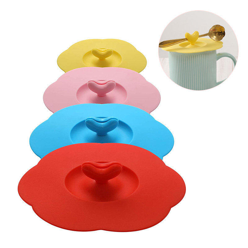 Set of 4 Silicone Cup Covers Heart Shape Multicolored Lids for Mugs Cups