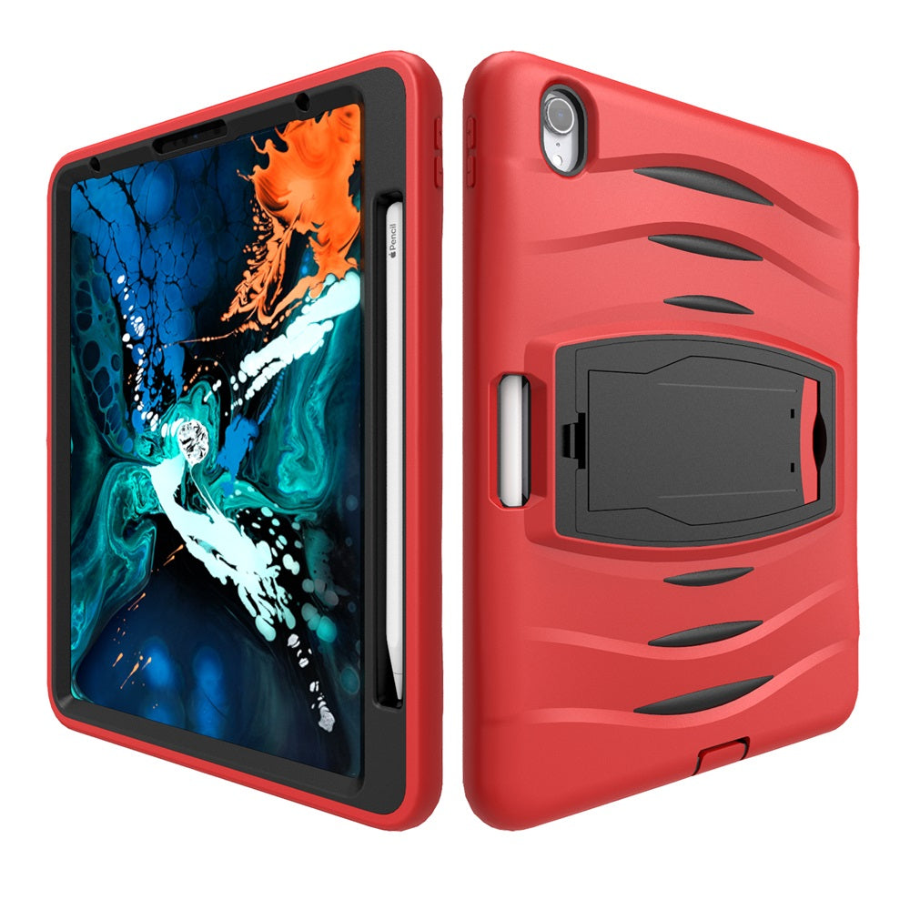 Shock Wave Kickstand Case Anti-Fall Protection With Pencil Holder For iPad Pro12.9 (2018)-Red