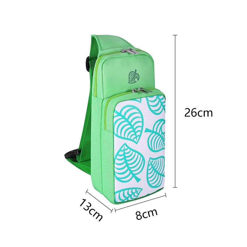 - Leaf Themed Shoulder Bag: Features a large storage capacity compatible with Nintendo Switch Dock, Nintendo Switch Console & Nintendo Switch Lite, even be put inside its carrying case. The two-way zipper front pockets can hold your Switch console securely in place and have an easy access.