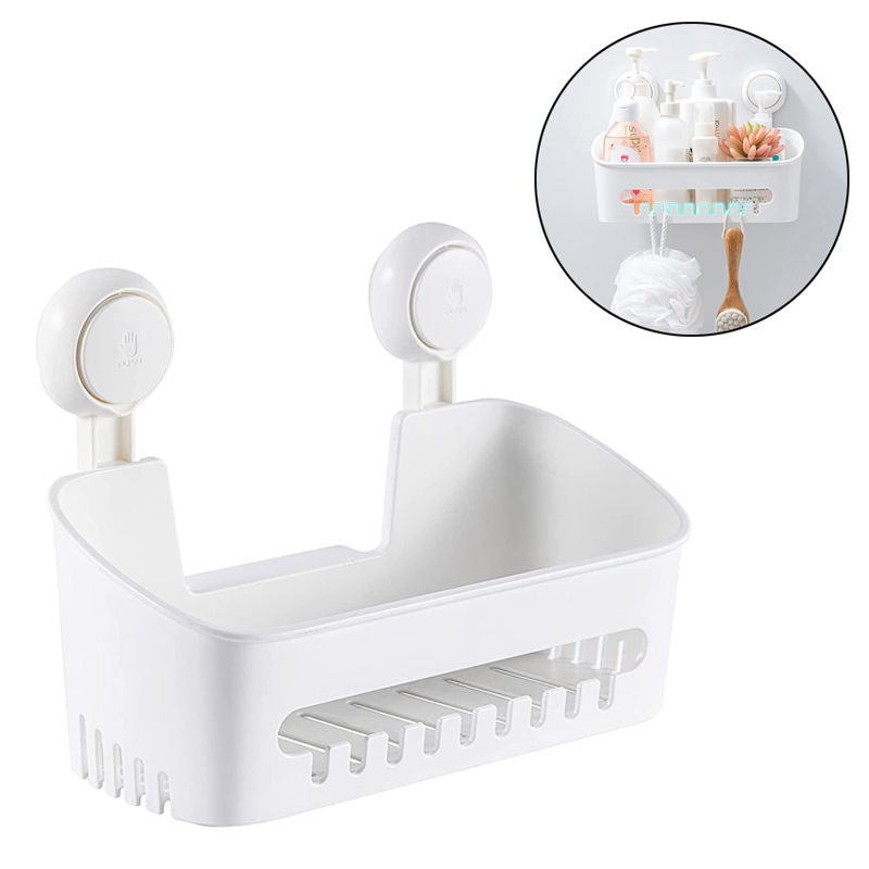 - Durability and strong suction power: The shower box is made of high-quality thick ABS material. Our sucker based on the principle of the bionic octopus sucker is made of TPE material and can withstand a weight of 22 pounds. The basket organizer and towel hook are waterproof, so they can be used in wet areas such as bathrooms and kitchens.