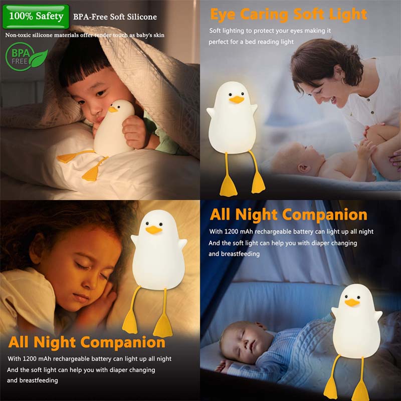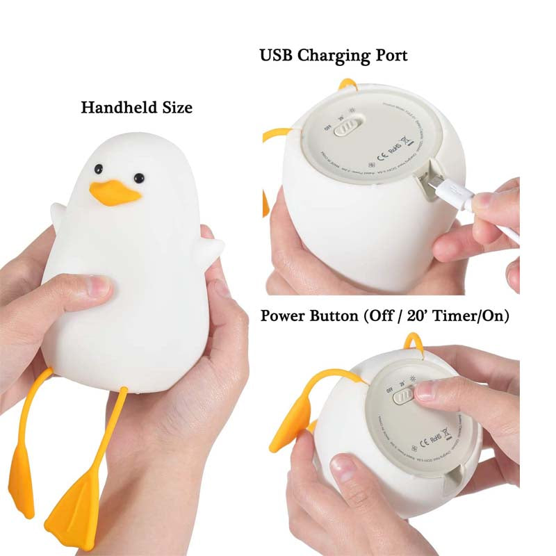 Silicone Duck Bedside Lamp Rechargeable for Nursery-Yellow Mouth