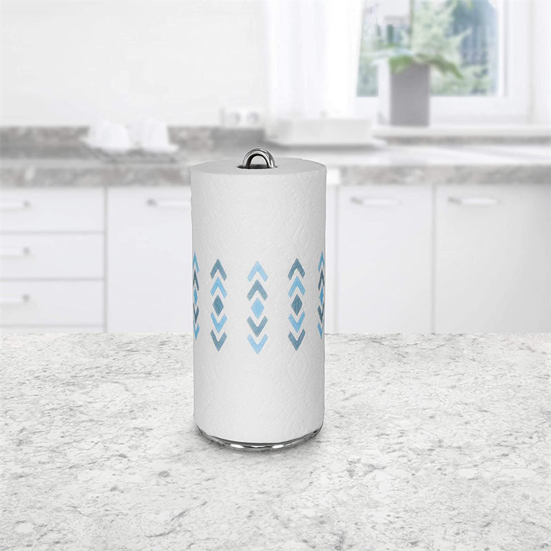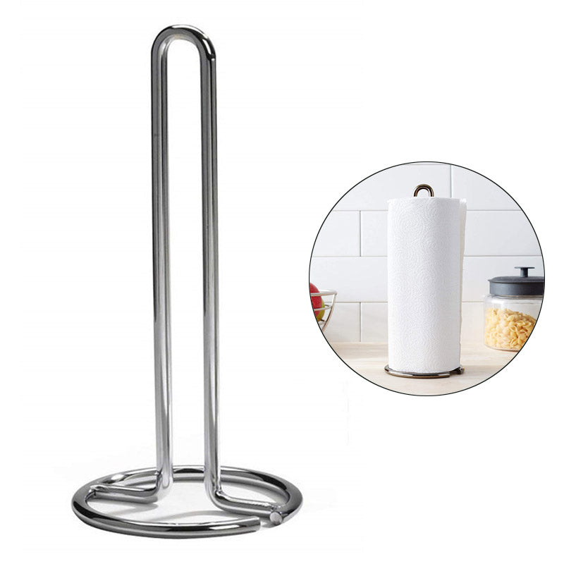 - STYLISH COUNTERTOP ACCESSORY: With a minimalist design and contemporary finishes, this paper towel holder will look beautiful in any kitchen. The compact holder will take up little space on your countertop or dining table, leaving more space for food, decor, or storage items. The sleek sturdy steel looks modern while boasting old-fashioned durability. The circular base does not lean or tip, making it easy to tear off a paper towel when you need it.
