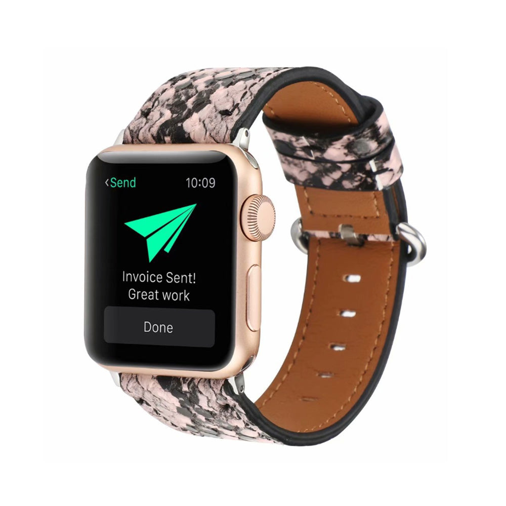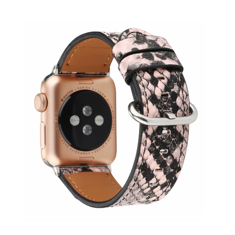 Snakeskin Pattern PU Leather Watch Band Microfiber Design For Apple Watch SE/6/5/4/3/2/1(Pink)