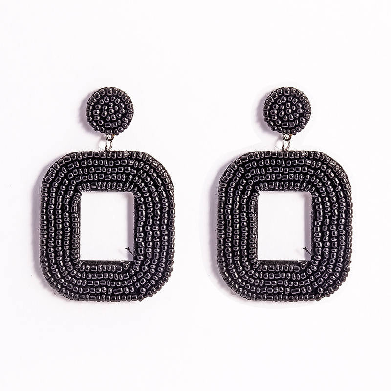 Square Hoop Dangle Beaded Earrings-Black