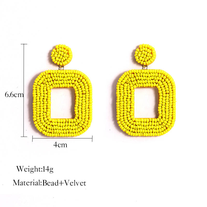 - Beaded statement earrings in gorgeous colors features beaded round top stud with a hanging square drop-hoops to create a statement pieces.Thanks to a full seed beads wire wrapped, these beaded earrings offer a lightweight and comfortable feel.
