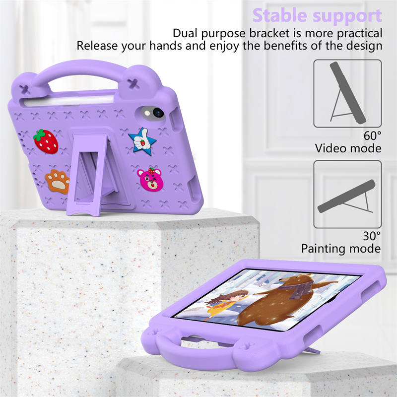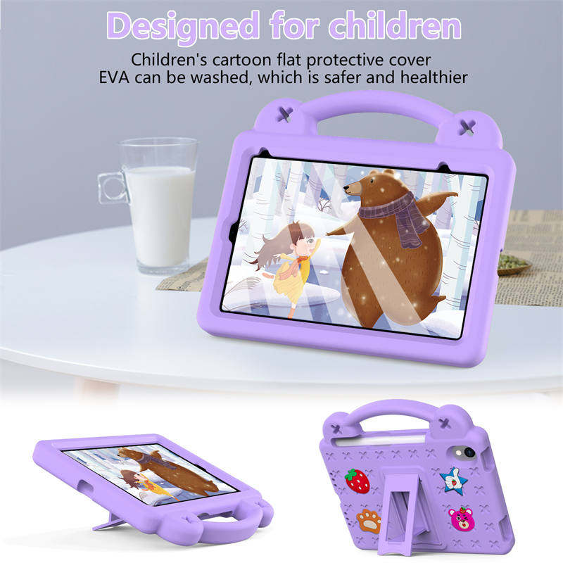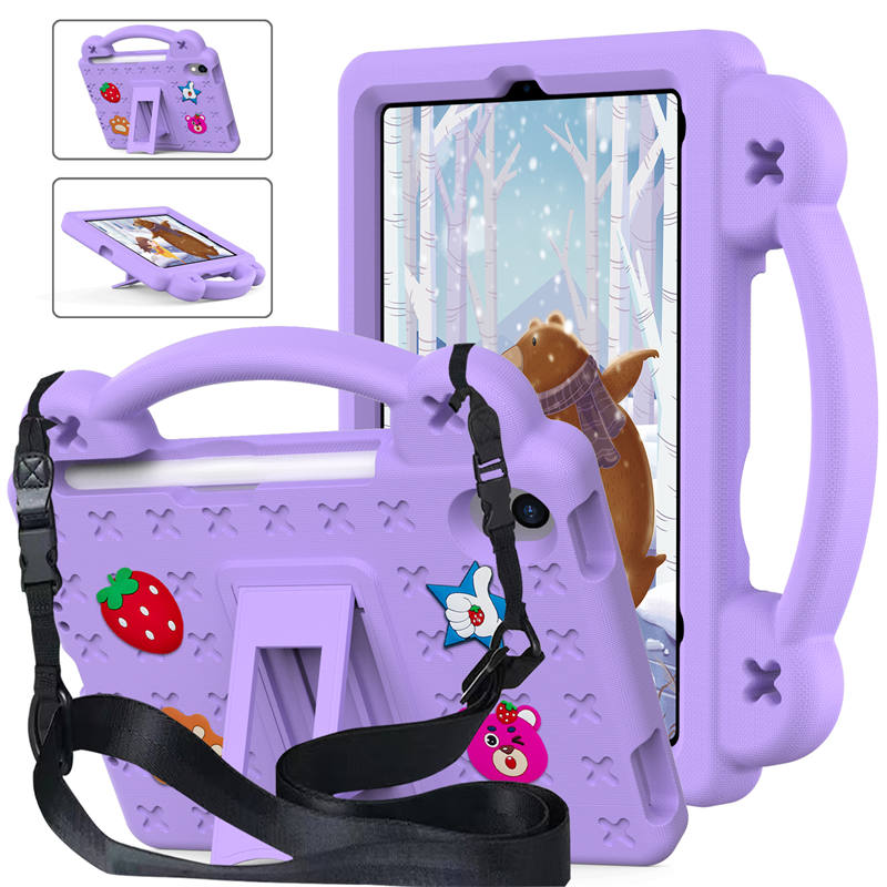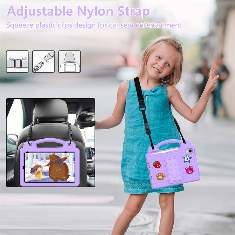 Strawberry iPad Mini 6 Case 8.3 Inch Shockproof Cover with Handle Band Shoulder Strap-LightPurple