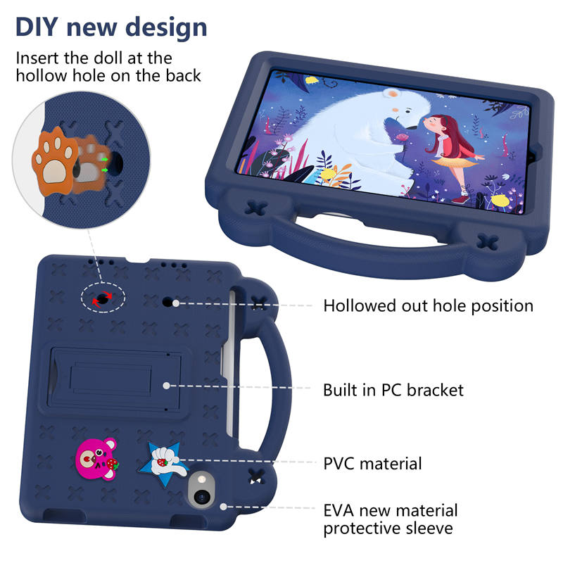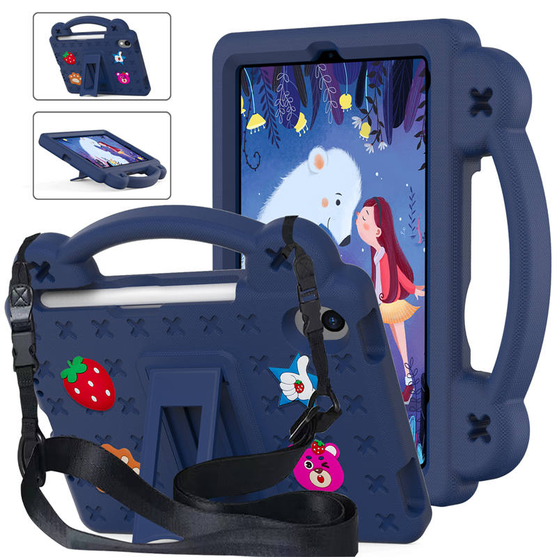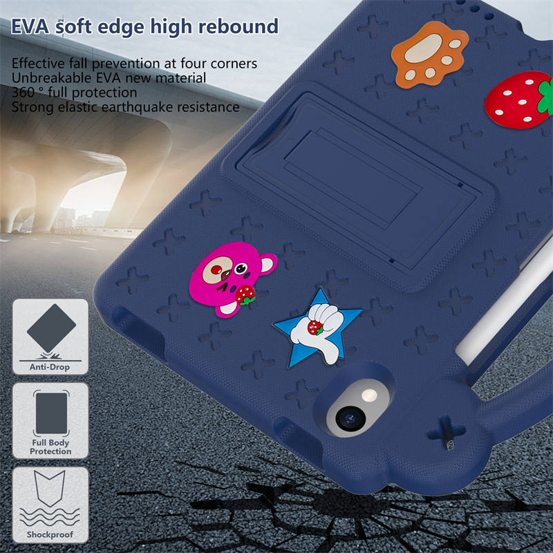Strawberry iPad Mini 6 Case 8.3 Inch Shockproof Cover with Handle Band Shoulder Strap-NavyBlue