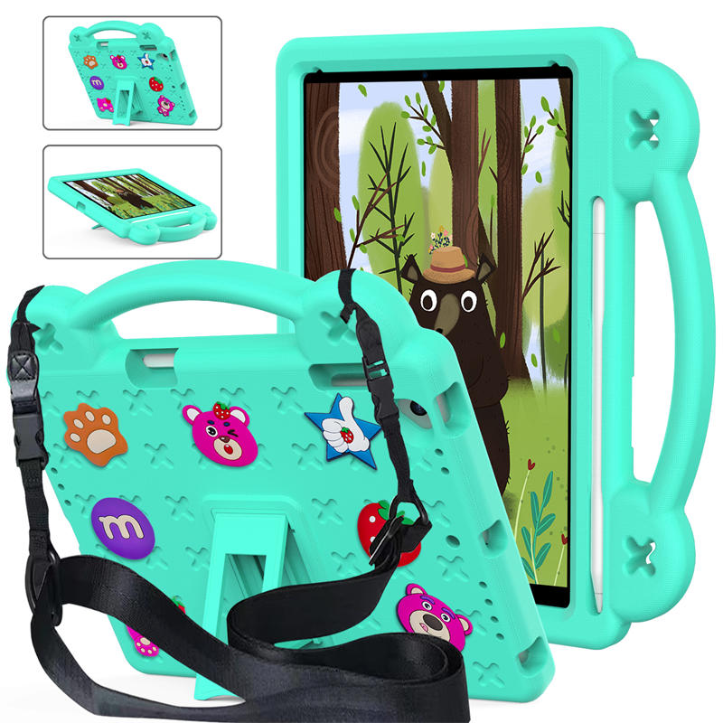 Strawberry Rugged iPad Case With Holder Shoulder Strap for PRO 9.7 Air1/ Air2-MintGreen