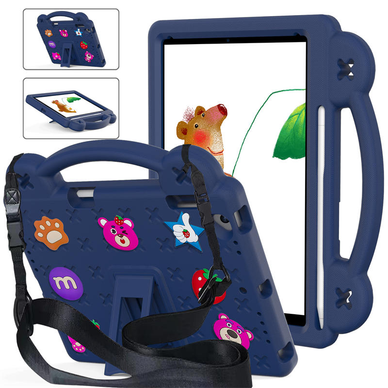 Strawberry Rugged iPad Case With Holder Shoulder Strap for PRO 9.7 Air1/ Air2-NavyBlue