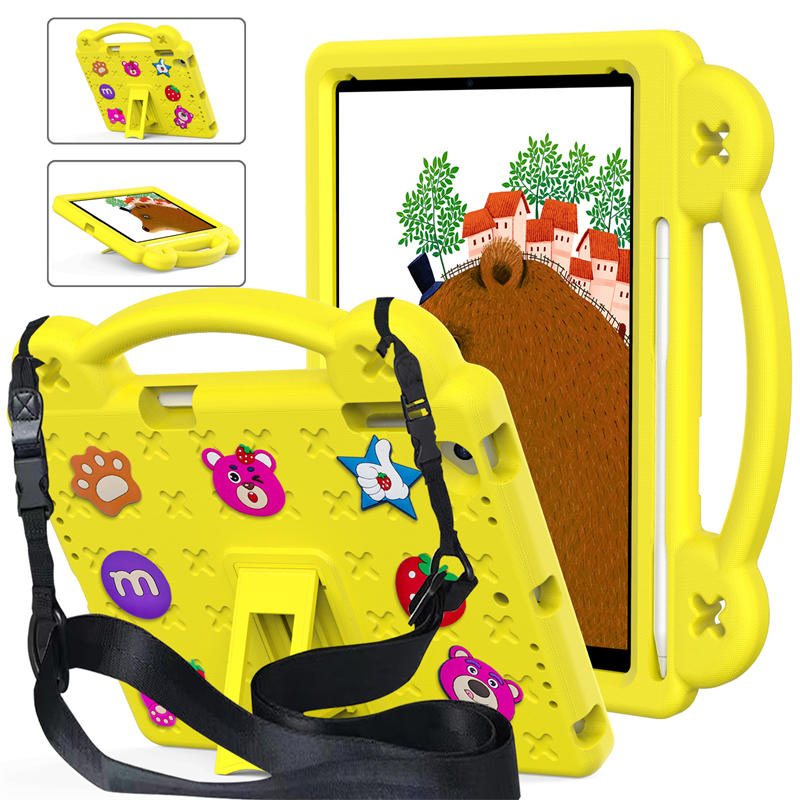 Strawberry Rugged iPad Case With Holder Shoulder Strap for PRO 9.7 Air1/ Air2-Yellow