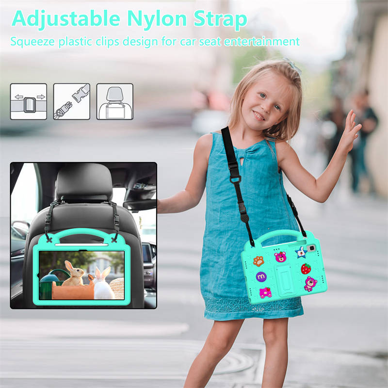 Strawberry Tablet Case with Holder Shoulder Strap for Samsung Galaxy Tab A7 10.4(2020)/TAB S6 lite 10.4(2020/2022/S6 10.5(2019)/S5E 10.5(2019)-Mint Green
