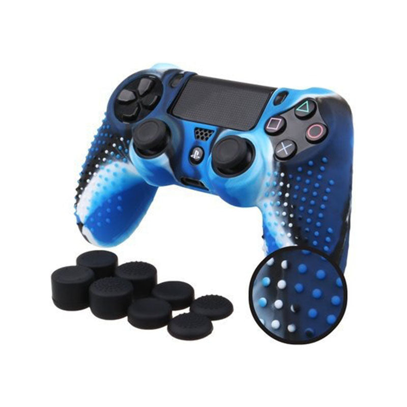 Studded Silicone Cover with 8 Thumb Grips for PS4/slim/Pro Controller-Black Blue
