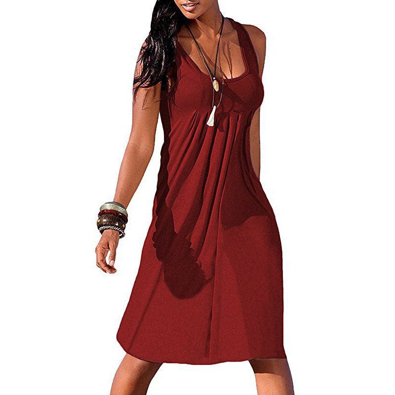 Summer Beach Tank Dresses Sleeveless Tunic Long Dress-WineRed