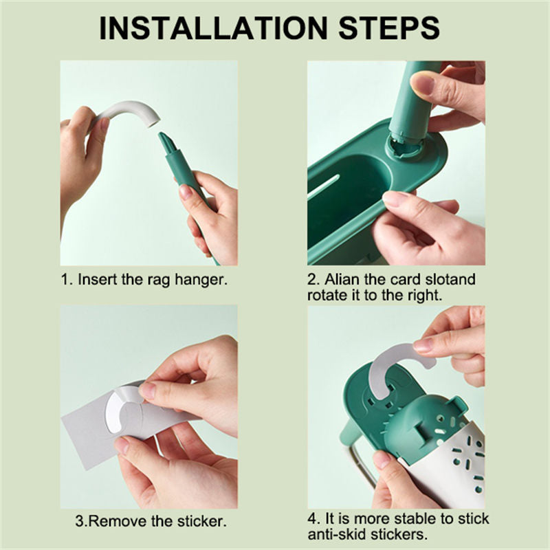 Telescopic Sink Storage Rack Dishcloth Sponge Draining Holder-Green